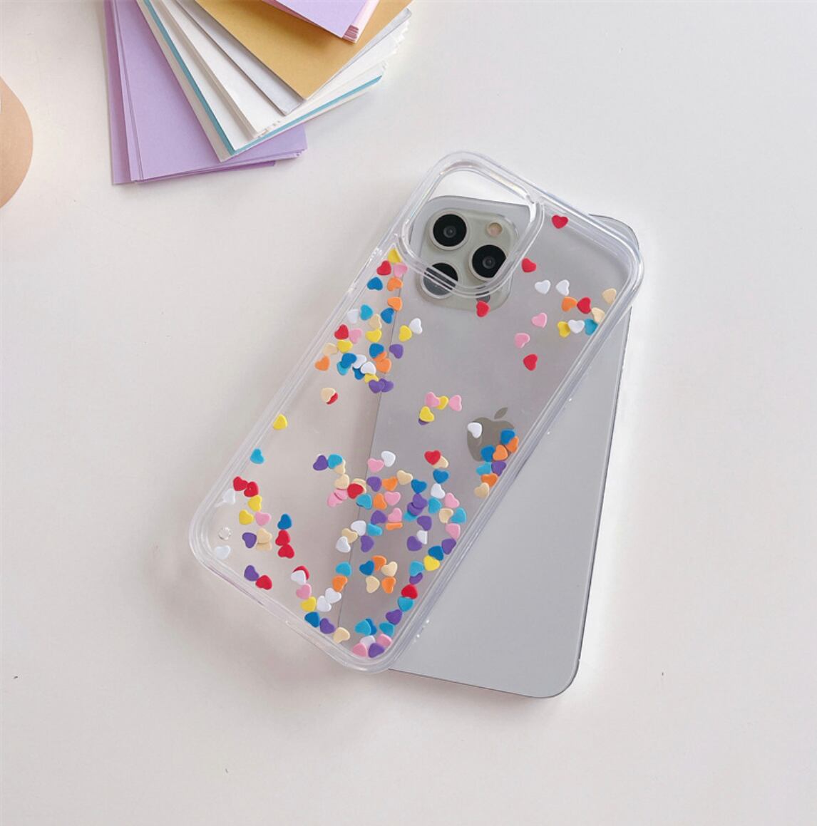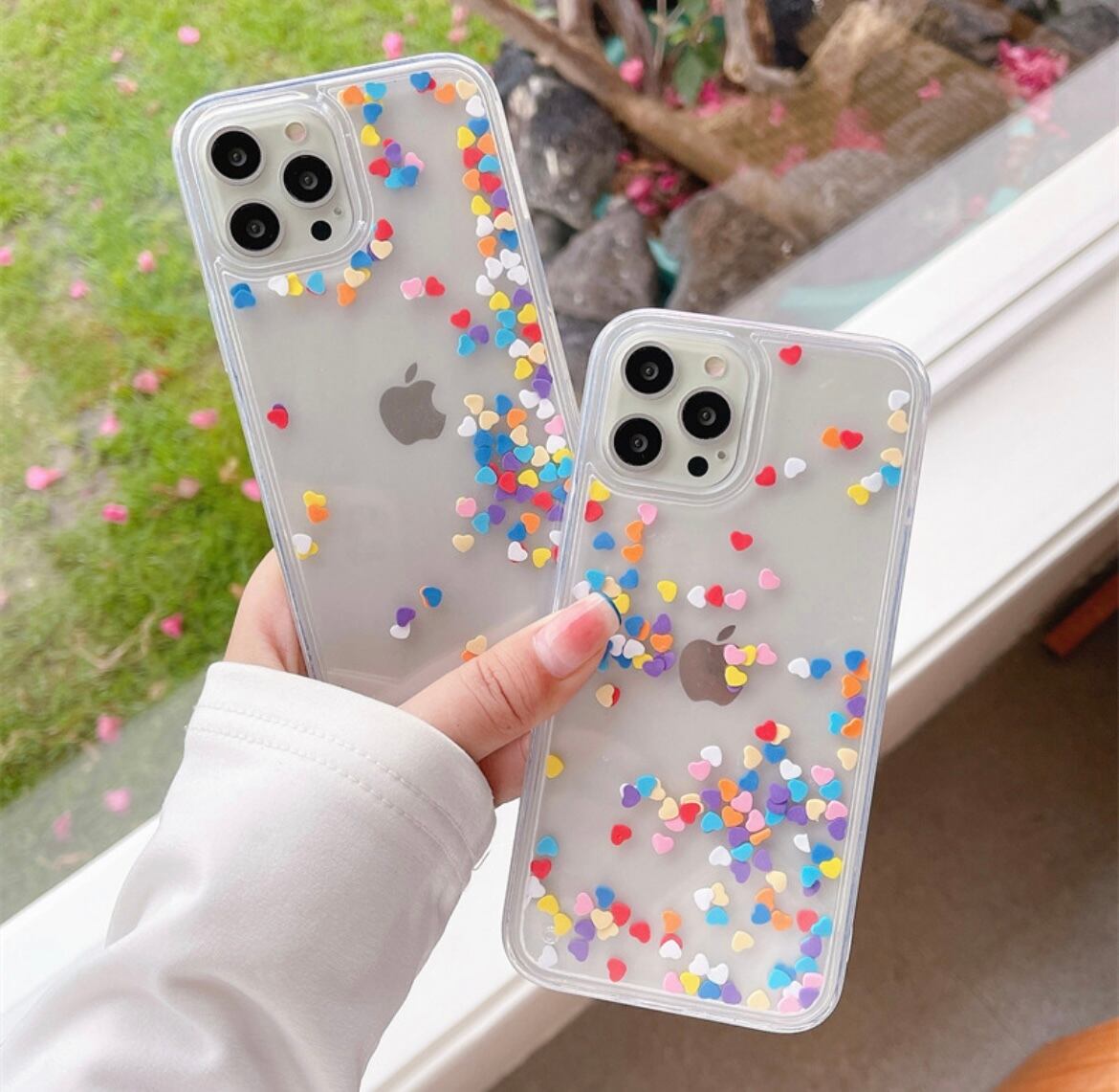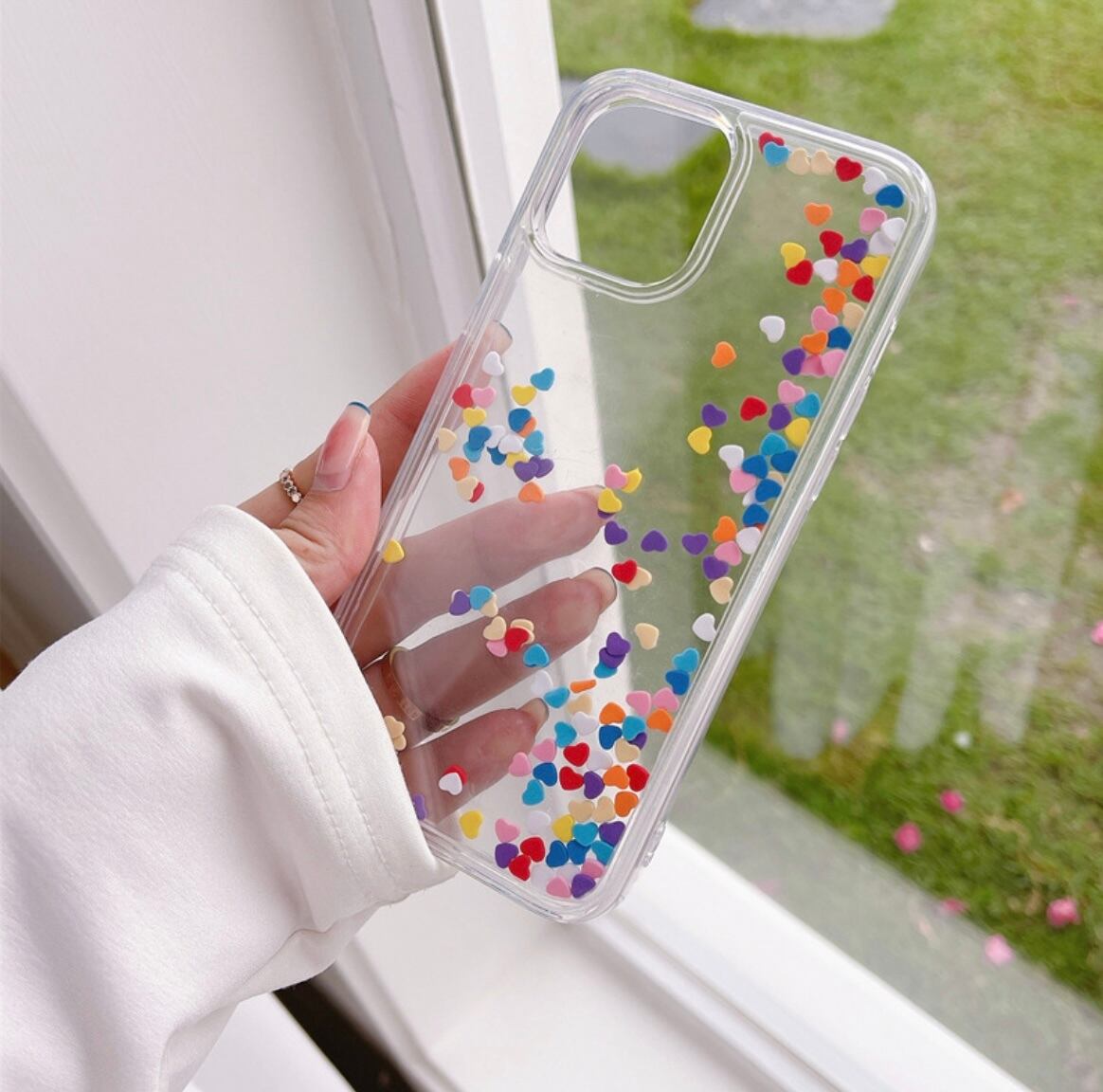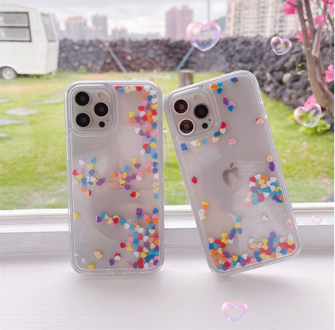 揺れる ハート カラフル 動く フレーク キラキラ iPhone case グリッター