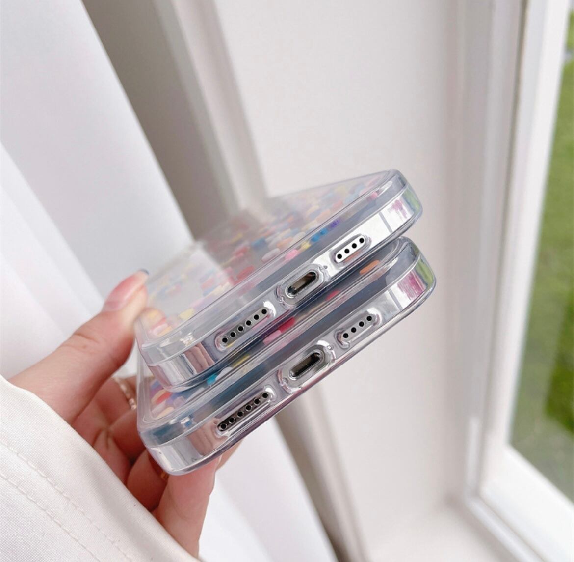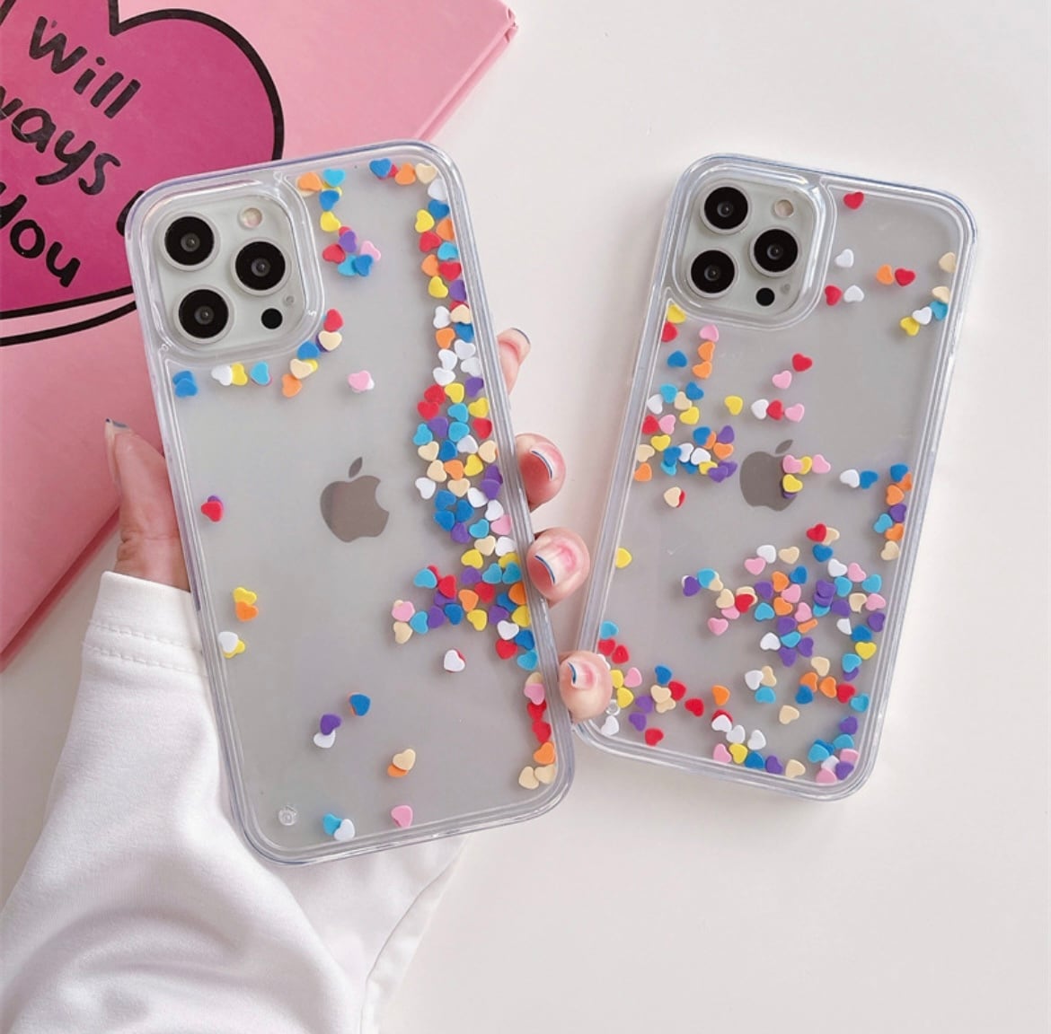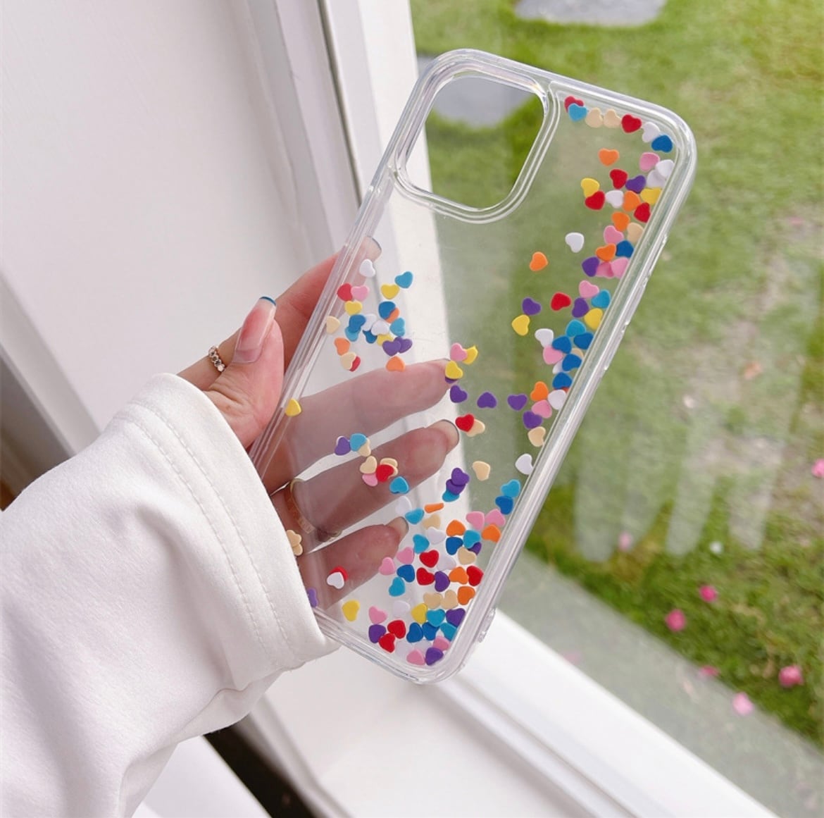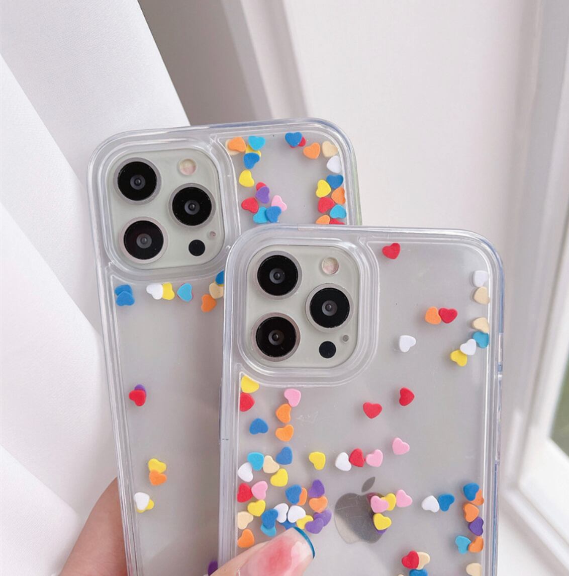 揺れる ハート カラフル 動く フレーク キラキラ iPhone case グリッター