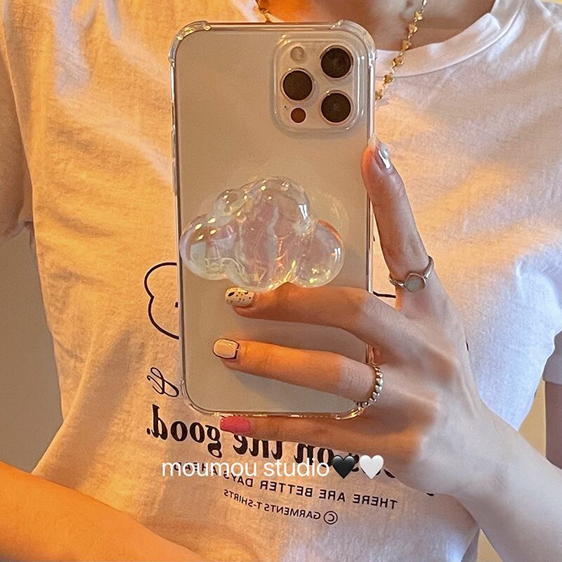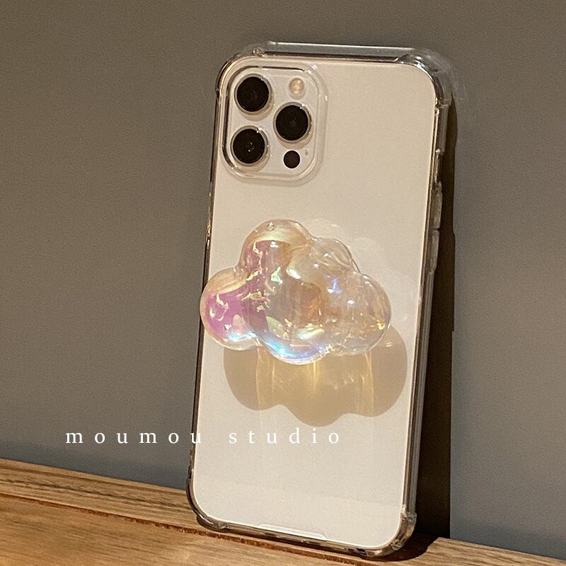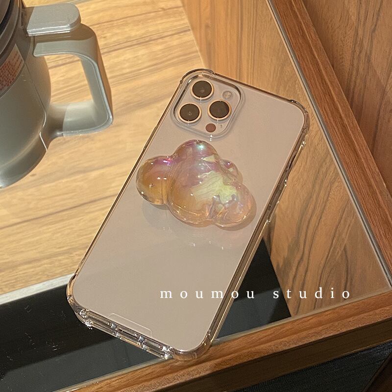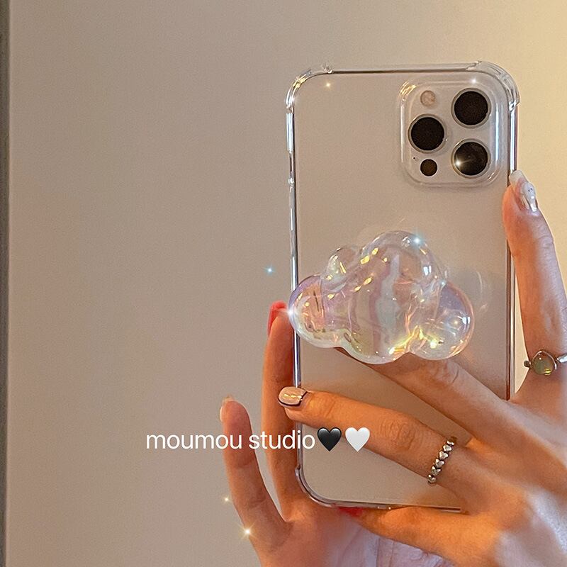 キラキラ雲 グリップトック付き iPhoneケース オーロラ クリア もくもく 雲 ふわふわ かわいい 韓国