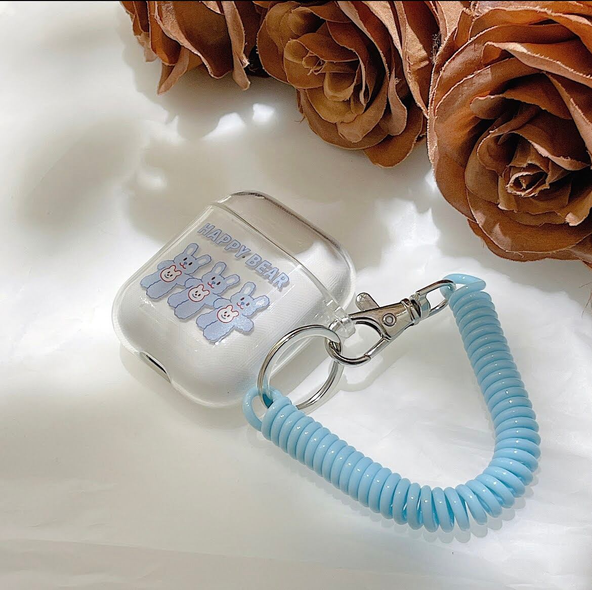 1個 ウサギ&文字グラフック イヤホンケース & キーチェーン Airpods用