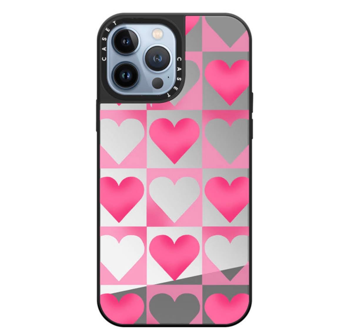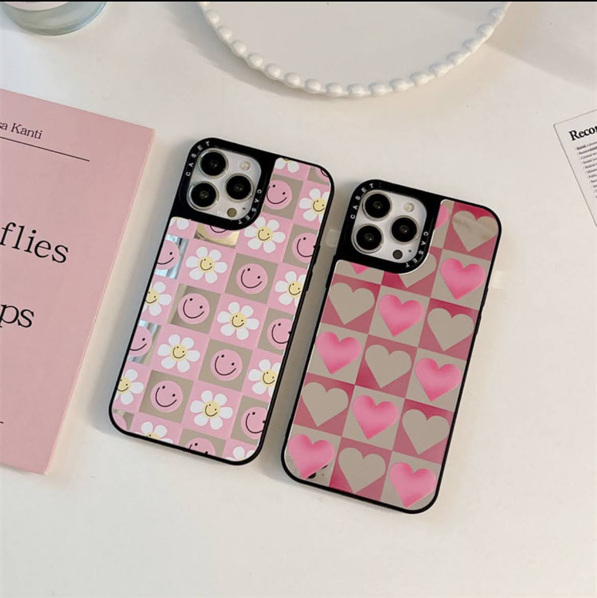 iPhone 11 Pro Max ラブハート チェッカーボード グルービー スマホケース ハートチェック ピンク フラワー にこちゃん ニコチャン 柄 ユニーク ミラー 海外 韓国 韓国っぽ かわいい 可愛い オシャレ