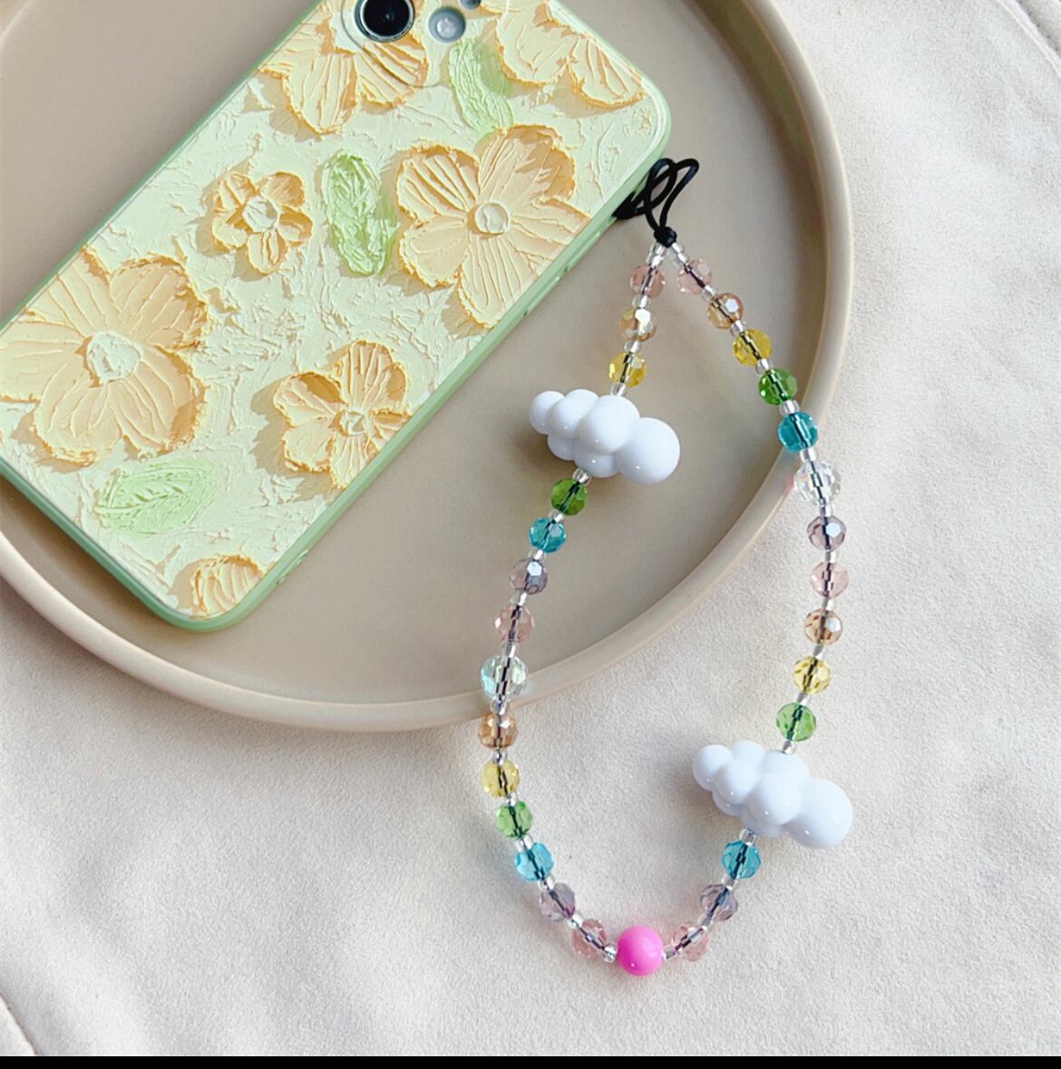 スマホケース ハンドストラップ かわいい ビーズ 落下防止 スマホホルダー スマホ用ストラップ ギフト リストストラップ 落下防止 スマートフォン iPhone おしゃれ カラフル 女子 チャーム 韓国 カメラ ベルト キーホルダー スマホ 手掛けストラップ ビーズ 雲 スマホ