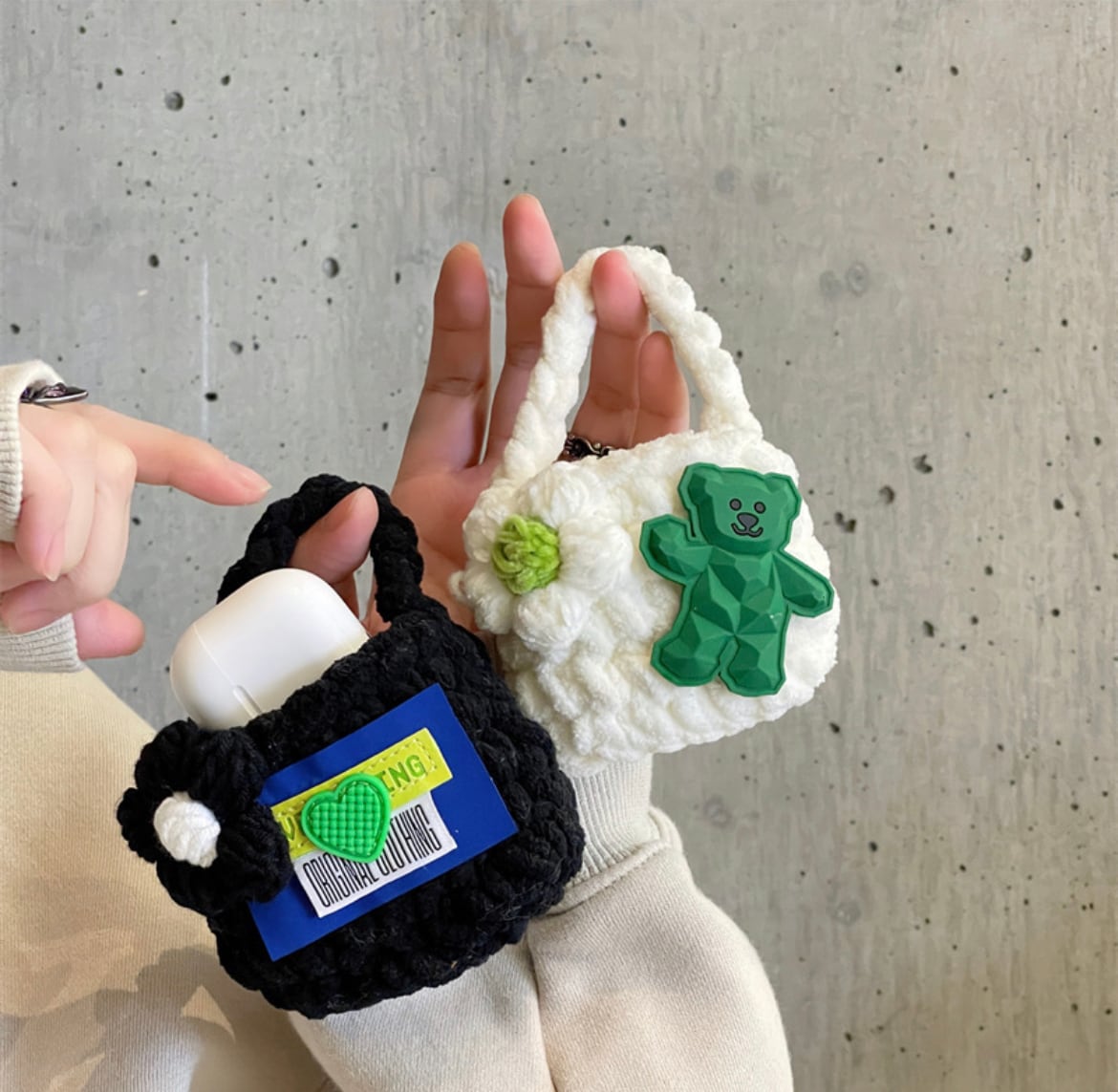 airpods Pro ケース カバー airpods 人気 手編み ニット バッグ 編み物 毛糸 apple airpods エアポッズ プロ ケース エアポッズ ケース 便利収納 紛失防止 アップル イヤホン カバー 傷防止 おしゃれ かわいい 韓国 くま