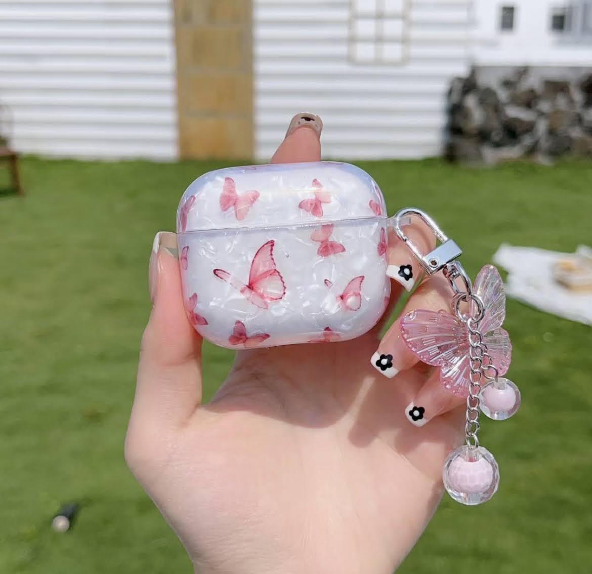 デニム AirPods Pro2 イヤホンケース エアポッズ 第2世代 エアポッズ 第1 おしゃれ ケース AirPods ケース AirPodsカバー インス映え Y2Kスタイル 蝶 Y2K Airpodsケース ケース iPhoneケース 韓国 第三世代ケース airpods 第3世代 カバー イヤホンケース 韓国 TPU 蝶々 チャーム シルバー レディース 女性 傷防止 チェーン ストラップ ピンク